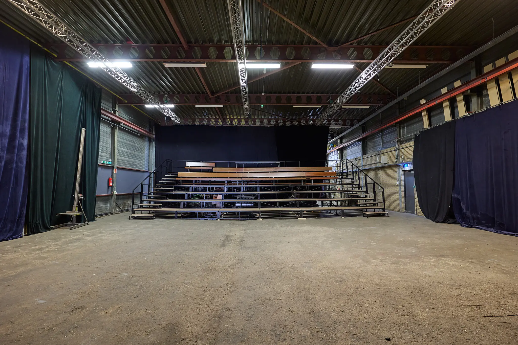 Deze grote ruimte op de Grote Voort is een flexibele zaal die je kan gebruiken voor voorstellingen, muziekoptredens en andere culturele evenementen. Deze zaal heeft een uitstraling die jouw evenement extra bijzonder maakt. Met een tribune voor 80 tot 100 personen, krachtstroom en een foyer om je gasten te ontvangen kun je veel kanten op met deze zaal. Er is geen standaard licht- of geluidsinstallatie aanwezig in deze zaal.