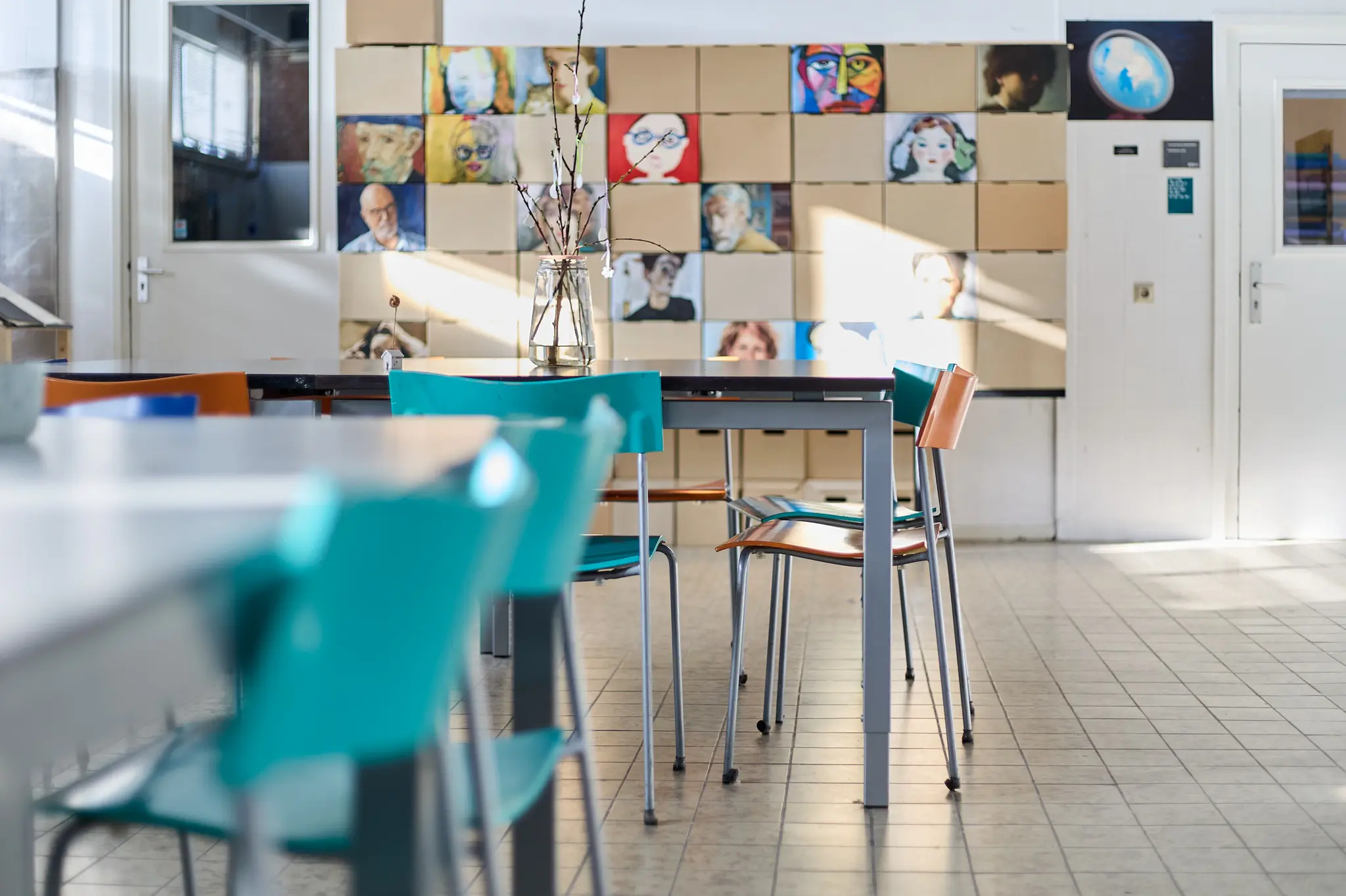 Deze ruimte wordt regelmatig gebruikt als workshopruimte. Dankzij de aanwezige watervoorziening is het extra geschikt voor workshops waarbij je aan de slag gaat met verf of andere materialen. Ideaal dus voor creatieve sessies, waarbij je handen vies mogen worden! Geïnteresseerd om deze ruimte (voor een vaste periode) te huren voor jouw workshops? Dat is bespreekbaar!